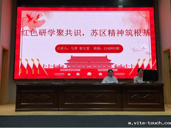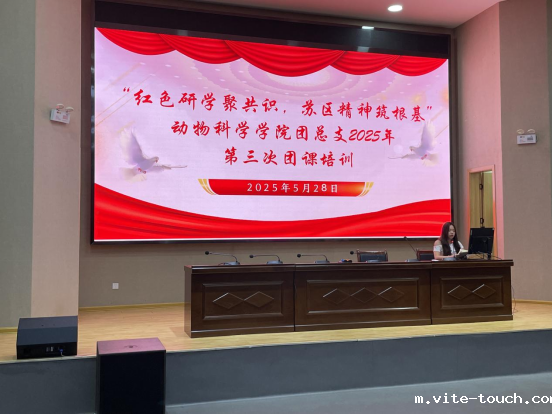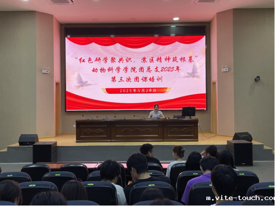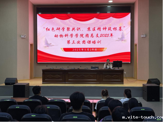 为深入学习贯彻党的二十大精神,传承红色基因,赓续红色血脉,动物科学学院团总支于5月28日晚在公共实训基地报告厅组织开展了“红色研学聚共识,苏区精神筑根基”主题团课培训,此次培训由组织部刘水花同学主持,动物科学学院团总支指导老师周满平及200余名青年团员参加。