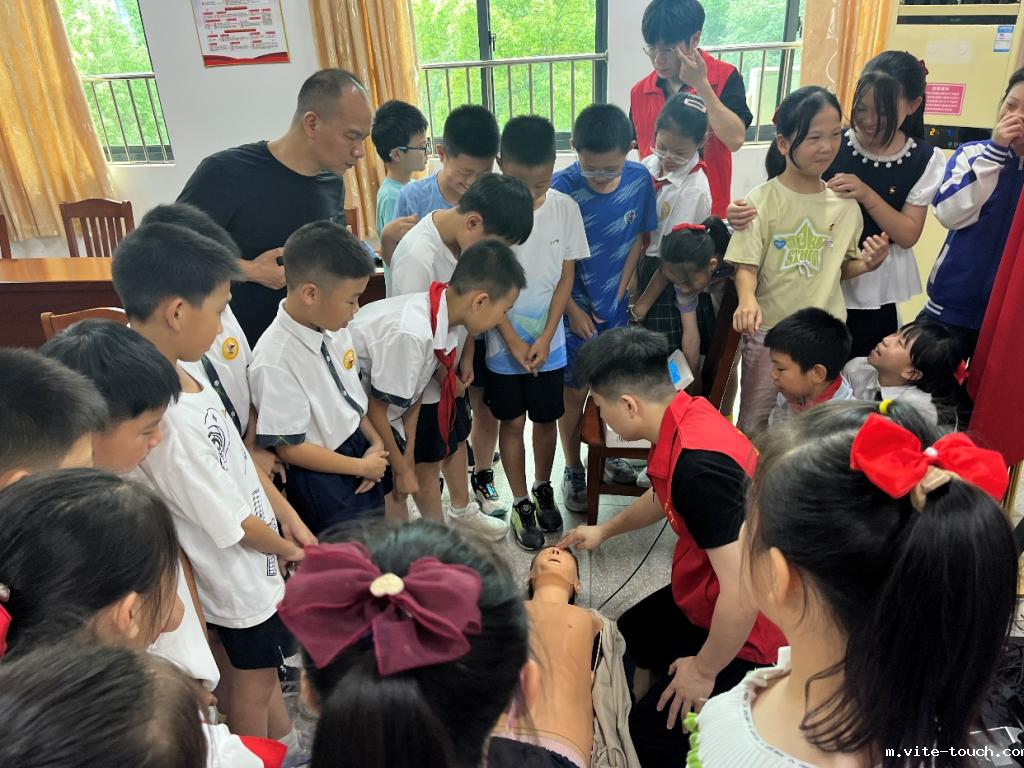 活动现场,朱文彬老师通过真实案例与互动问答,深入浅出地讲解了溺水高危场所识别、落水自救技巧及安全准则。现场演示了心肺复苏术(CPR)关键步骤和正确救援方法,并组织学生在专业指导下进行模拟演练。这场融合知识讲授与实操训练的“沉浸式”课堂,有效提升了百余名小学生的安全意识和应急能力。